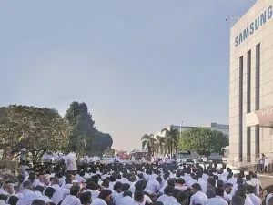 सैमसंग इंडिया के कर्मचारी प्रबंधन की अनुशासनात्मक कार्रवाई के खिलाफ आज सड़कों पर उतर गए। करीब 200 कर्मचारी और उनके परिवार के लोग सिपकोट औद्योगिक पार्क में कंपनी की इकाई से करीब 2 किलोमीटर दूर सुंगुवरछत्रम में विरोध-प्रदर्शन कर रहे थे।