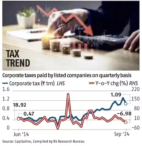 Q2FY25 में कॉरपोरेट टैक्स भुगतान 7% घटा