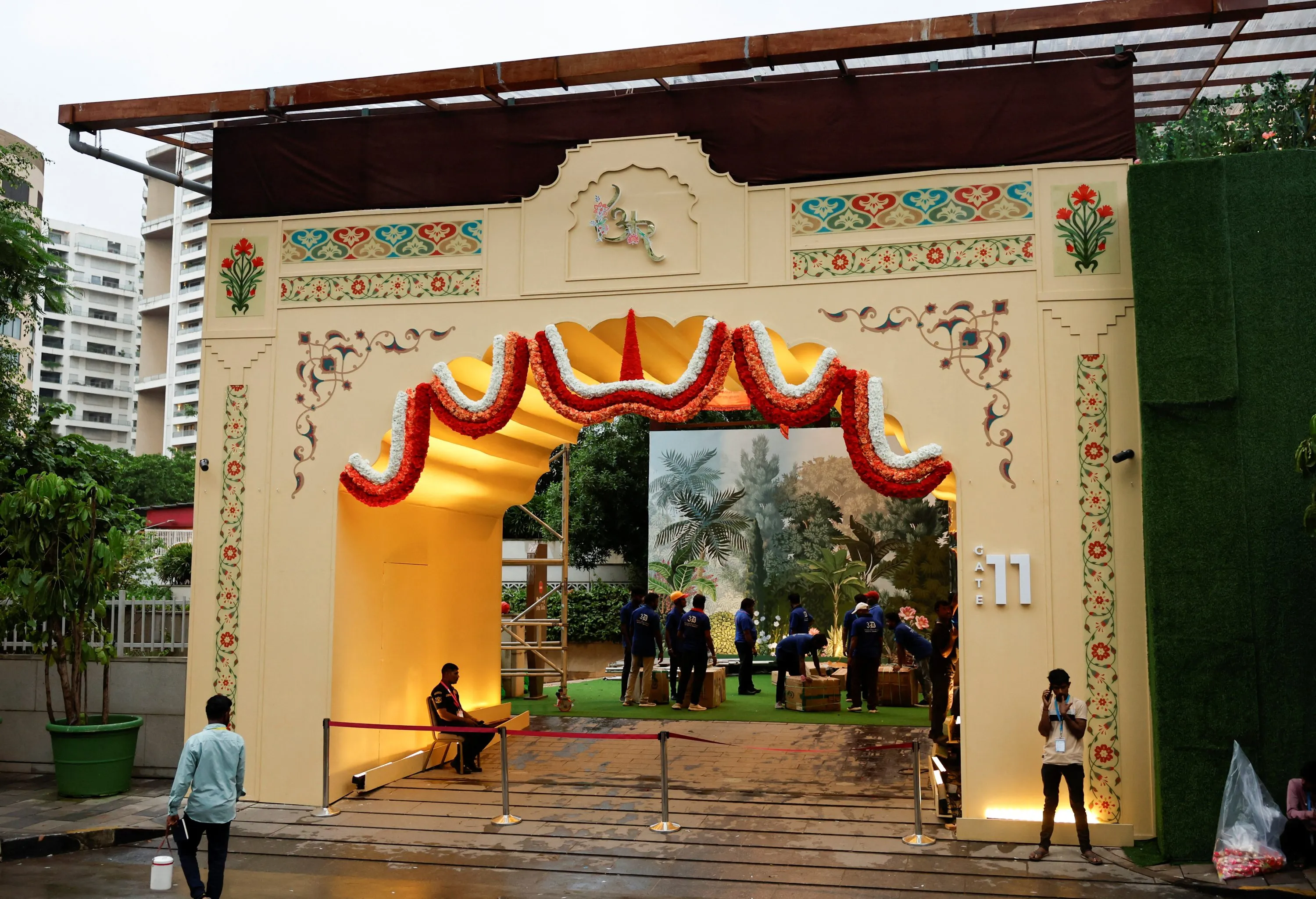 मुंबई के जियो वर्ल्ड सेंटर में अनंत और राधिका की शादी की तैयारियां लगभग पूरी हो चुकी हैं। इसके साथ ही बॉलीवुड और हॉलीवुड के सितारे, कई बड़े उद्योगपति और राजनेता मुंबई में एकत्रित हो रहे हैं।