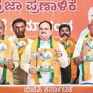 पार्टी ने मुसलमानों के लिए ‘असंवैधानिक’ आरक्षण को समाप्त करने की अपनी प्रतिबद्धता भी दोहराई। चुनावों की घोषणा से ठीक पहले, बसवराज बोम्मई के नेतृत्व वाले मंत्रिमंडल ने मुसलमानों के लिए 4 प्रतिशत आरक्षण को खत्म करने और इसे लिंगायत और वोक्कालिगा समुदाय के बीच समान रूप से विभाजित करने का फैसला किया जो कर्नाटक में दो राजनीतिक रूप से प्रभावशाली जाति समूह माने जाते हैं। नड्डा ने कहा कि राज्य के लिए भाजपा का दृष्टिकोण ‘सभी के लिए न्याय, किसी के लिए तुष्टीकरण नहीं’ है।