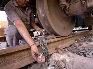 हावड़ा के शालीमार रेलवे स्टेशन पर चक्रवात रेमल के पहुंचने से पहले एहतियात के तौर पर एक रेलकर्मी ने ट्रेन को जंजीरों से ट्रैक पर बांध दिया