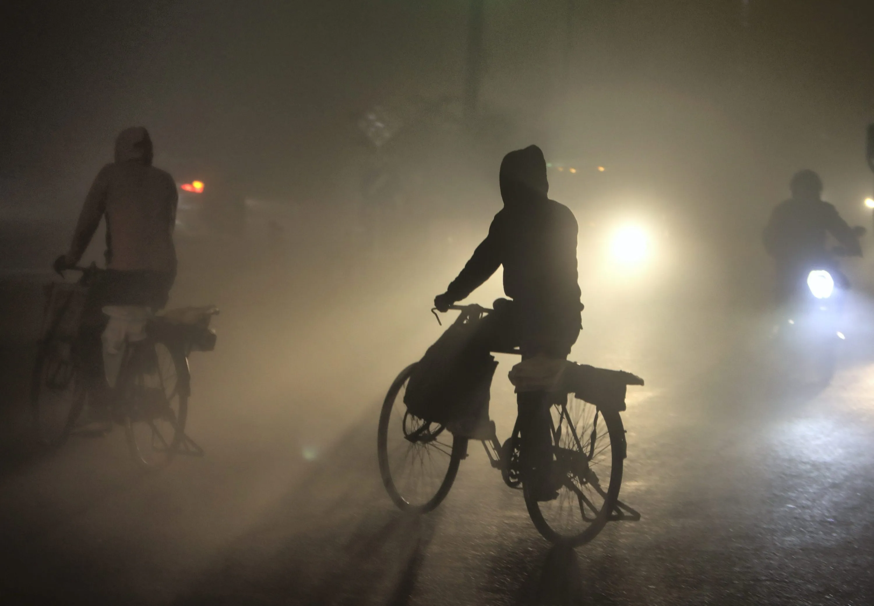 New Delhi: A commuter rides past on a cold winter morning during fog, in New Delhi, Wednesday, Dec. 27, 2023. (PTI Photo) (PTI12_27_2023_000010B)