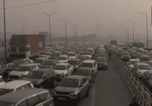 दिल्ली-गुरुग्राम बॉर्डर पर जाम में फंसे लोग