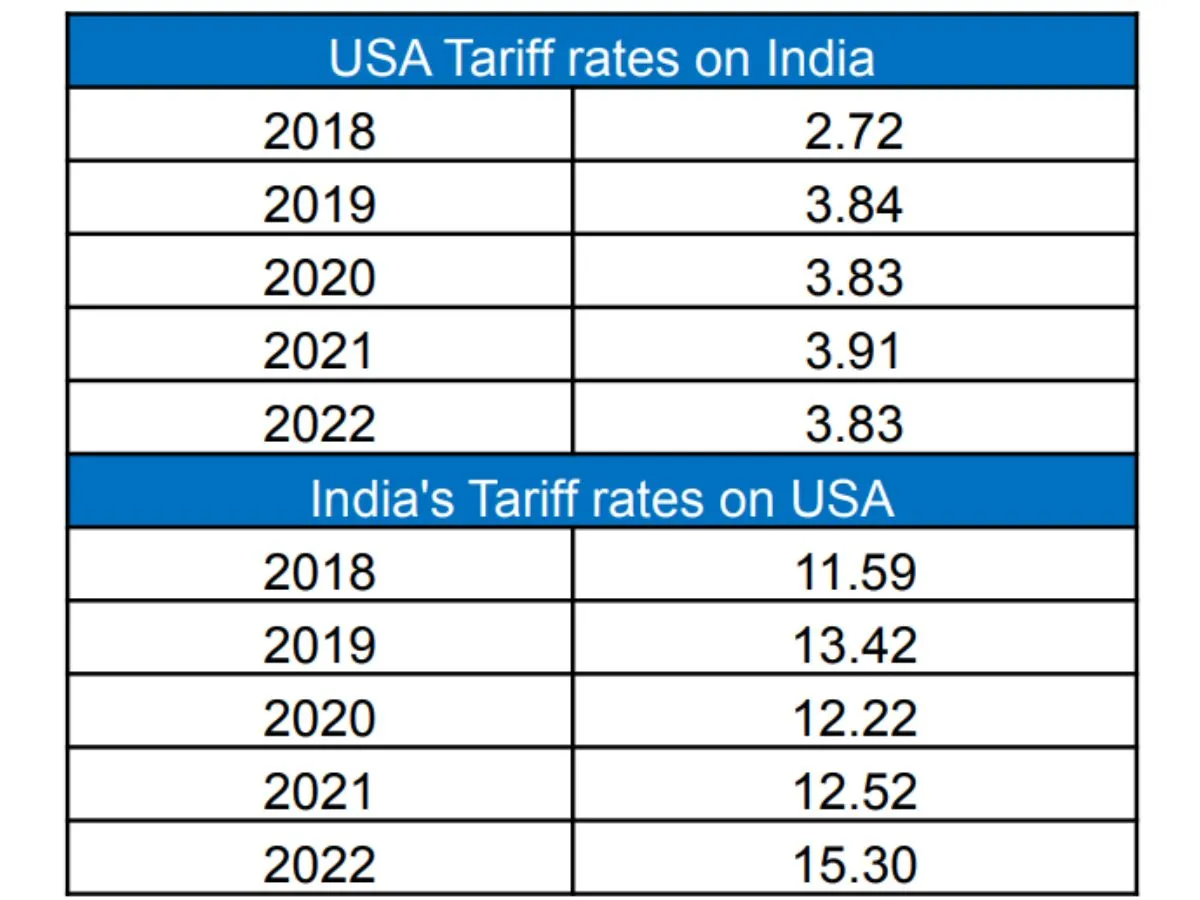 पिछले कुछ वर्षों में भारत और अमेरिका दोनों ने अपने आयात-निर्यात शुल्क (टैरिफ) में बदलाव किए हैं। हालांकि, आंकड़ों से यह साफ होता है कि अमेरिका ने भारत से आने वाले सामानों पर टैरिफ बढ़ाया है, जो 2018 में 2.72% था और 2021 में बढ़कर 3.91% हो गया। 2022 में यह थोड़ा घटकर 3.83% रह गया।