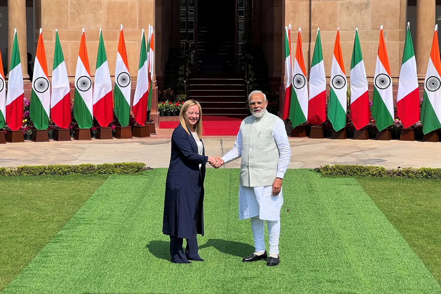 यह पिछले पांच वर्षों में किसी यूरोपीय देश के शीर्ष नेता का पहला भारत दौरा है। प्रधानमंत्री नरेन्द्र मोदी ने राष्ट्रपति भवन के प्रांगण में मेलोनी का स्वागत किया, जहां उन्हें तीनों सेनाओं ने गार्ड ऑफ ऑनर दिया।