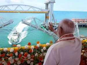 पंबन समुद्री पुल का उद्घाटन करते प्रधानमंत्री मोदी