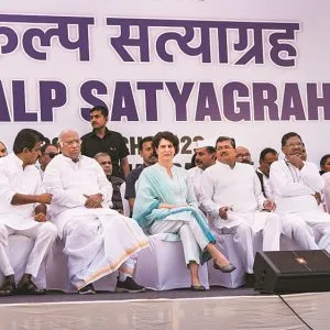 संकल्प सत्याग्रह की शुरुआत करते हुए कांग्रेस अध्यक्ष मल्लिकार्जुन खरगे और पार्टी की नेता प्रियंका गांधी वाड्रा ने सरकार पर आरोप लगाया कि लोगों के हित में आवाज उठाने की वजह से शहीद के बेटे की आवाज बंद करने की कोशिश की जा रही है।