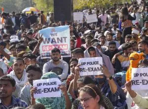उत्तर प्रदेश में पुलिस भर्ती परीक्षा का प्रश्न पत्र लीक होने के मामले में राज्य पुलिस के विशेष कार्य बल (एसटीएफ) ने दो आरोपियों को यहां विभूति खंड इलाके से गिरफ्तार किया। अधिकारियों ने शनिवार को यह जानकारी दी।