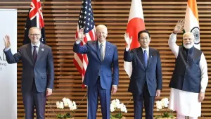 ‘क्वाड’ (चतुष्पक्षीय सुरक्षा संवाद) के नेताओं की बैठक के बाद संयुक्त रूप से जारी एक घोषणा पत्र में कहा गया कि चार देशों का यह समूह अच्छे मकसद से बनाया गया है और रणनीतिक रूप से पहले से कहीं अधिक एकजुट है।