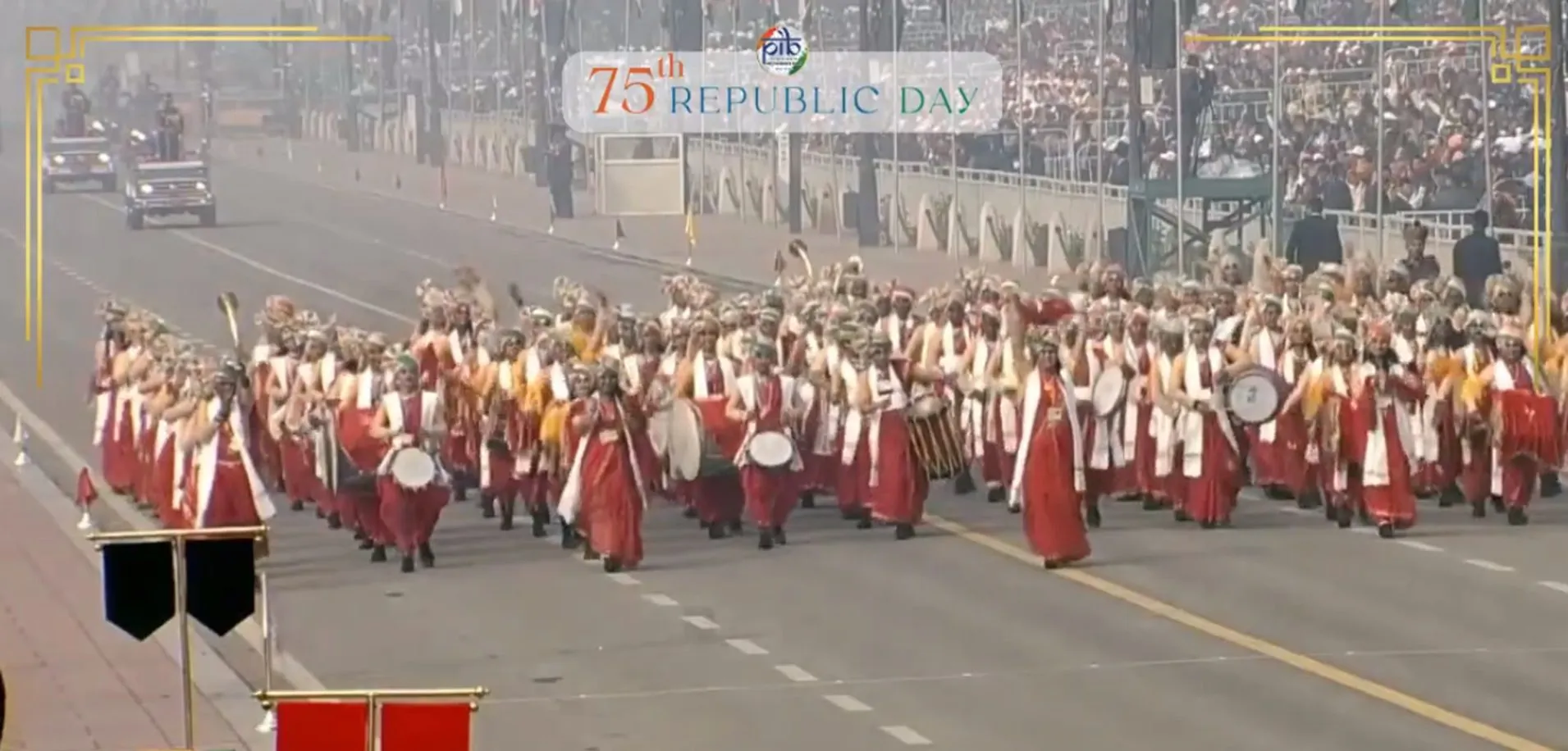 पहली बार, परेड की शुरुआत 100 से अधिक महिला कलाकारों ने भारतीय संगीत वाद्ययंत्र बजाते हुए की। परेड की शुरुआत इन महिला कलाकारों ने शंख, नादस्वरम, नगाड़ा आदि बजाते हुए मधुर संगीत के साथ की।