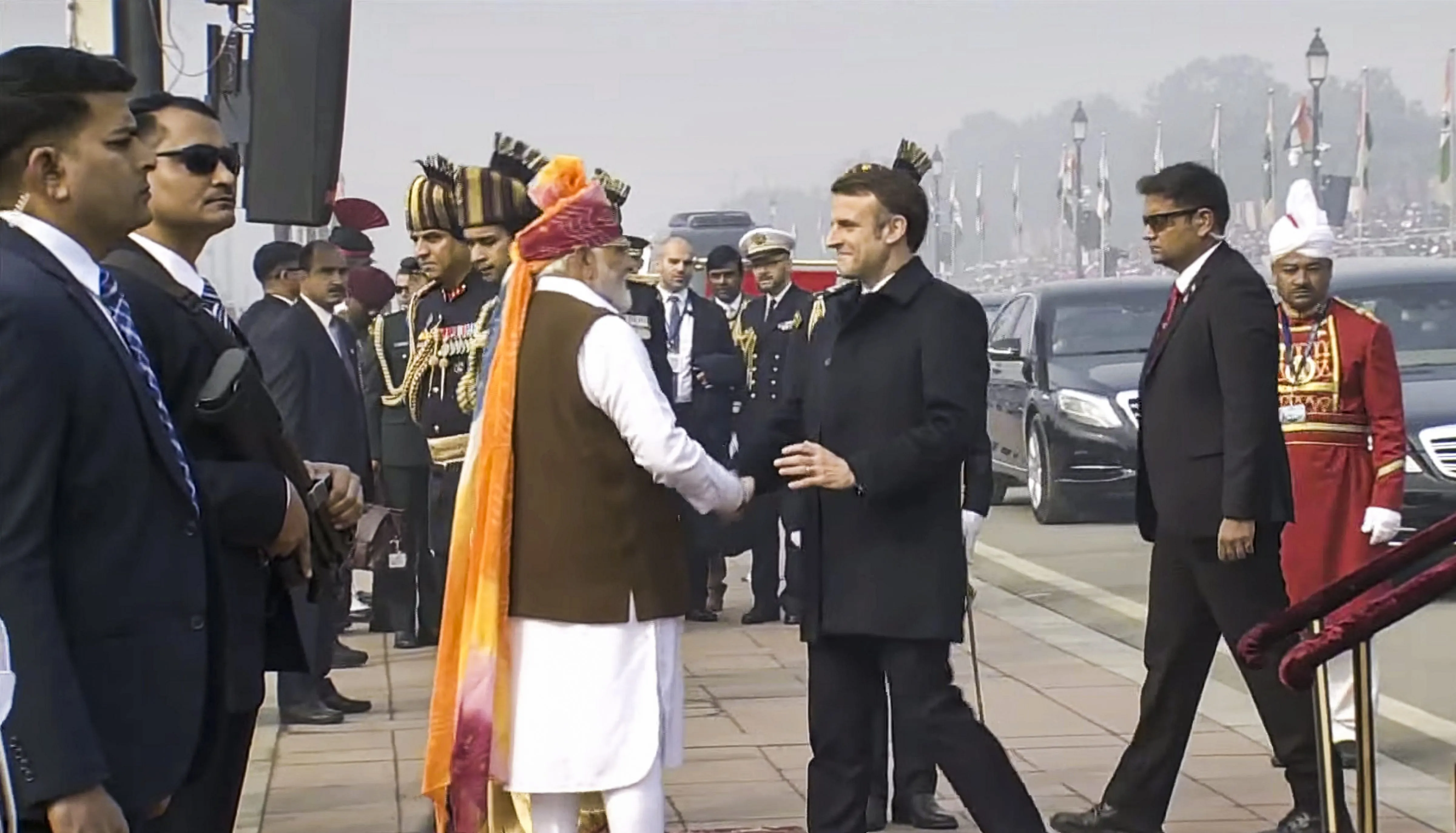 राष्ट्रपति मैक्रों ने गुरुवार को जयपुर में प्रधानमंत्री मोदी के साथ अनेक मुद्दों पर बातचीत की थी। इस परेड में फ्रांस के 95 सदस्यीय मार्चिंग टुकड़ी और 30 सदस्यीय बैंड टुकड़ी ने भी हिस्सा लिया। समारोह में दो राफेल लड़ाकू विमान और फ्रांसीसी वायु सेना के एक एयरबस ए330 मल्टी-रोल टैंकर परिवहन विमान भी शामिल होंगे।