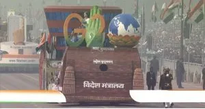 गणतंत्र दिवस समारोह की परेड में शुक्रवार को विदेश मंत्रालय की कई उपलब्धियों को दर्शाया गया जिनमें जी20 शिखर सम्मेलन की सफल मेजबानी और इस शक्तिशाली समूह की अध्यक्षता के दौरान भारत की कामयाबियां प्रमुख रूप से शामिल रहीं।