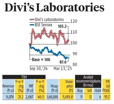 फार्मास्युटिकल्स निर्माता Divi’s Laboratories के शेयरों में बीते कुछ महीनों में तेजी देखी गई है। सितंबर 2024 से अब तक यह स्टॉक करीब 2% चढ़ चुका है, जो व्यापक बाजार और बेंचमार्क इंडेक्स से बेहतर प्रदर्शन दर्शाता है।