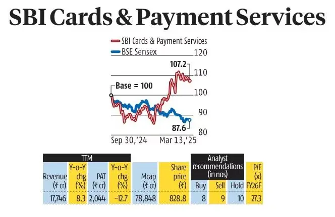 SBI Cards & Payment Services ने मौजूदा गिरावट के बीच बेहतर प्रदर्शन किया है। सितंबर 2024 के अंत से अब तक कंपनी का शेयर 8.4% चढ़ा है, जबकि इसी अवधि में NSE200 इंडेक्स में 15.4% की गिरावट आई है।