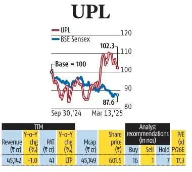 यूपीएल (UPL) ने छह तिमाहियों की गिरावट के बाद वित्त वर्ष 2024-25 की तीसरी तिमाही (Q3) में मजबूत प्रदर्शन किया है। कंपनी को एग्रोकेमिकल्स की मांग में सुधार से फायदा हुआ, जिससे वॉल्यूम ग्रोथ को भी समर्थन मिला।