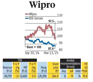 विप्रो का दिसंबर तिमाही (Q3) का रेवेन्यू ग्रोथ अनुमान के मुताबिक रहा, लेकिन कंपनी के मुनाफे में जबरदस्त सुधार दिखा। यह मुनाफा बीते 12 तिमाहियों में सबसे ऊंचे स्तर पर पहुंचा, जिससे बाजार को सकारात्मक सरप्राइज मिला।