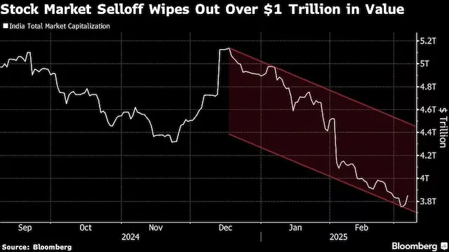भारतीय शेयर बाजार में लगातार गिरावट के बावजूद विदेशी फंड मैनेजर निवेश बढ़ाने को लेकर अभी भी सतर्क हैं। Bloomberg की रिपोर्ट के अनुसार, वैश्विक निवेशक भारतीय इक्विटी वैल्यूएशन में आई गिरावट को नजरअंदाज कर रहे हैं, क्योंकि बाजार आर्थिक सुस्ती, मुनाफे में कटौती और संभावित अमेरिकी टैरिफ जैसे कई जोखिमों से जूझ रहा है।