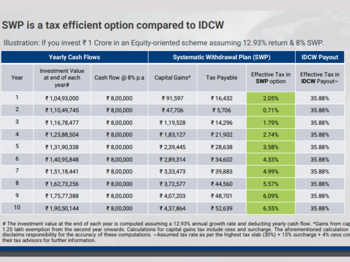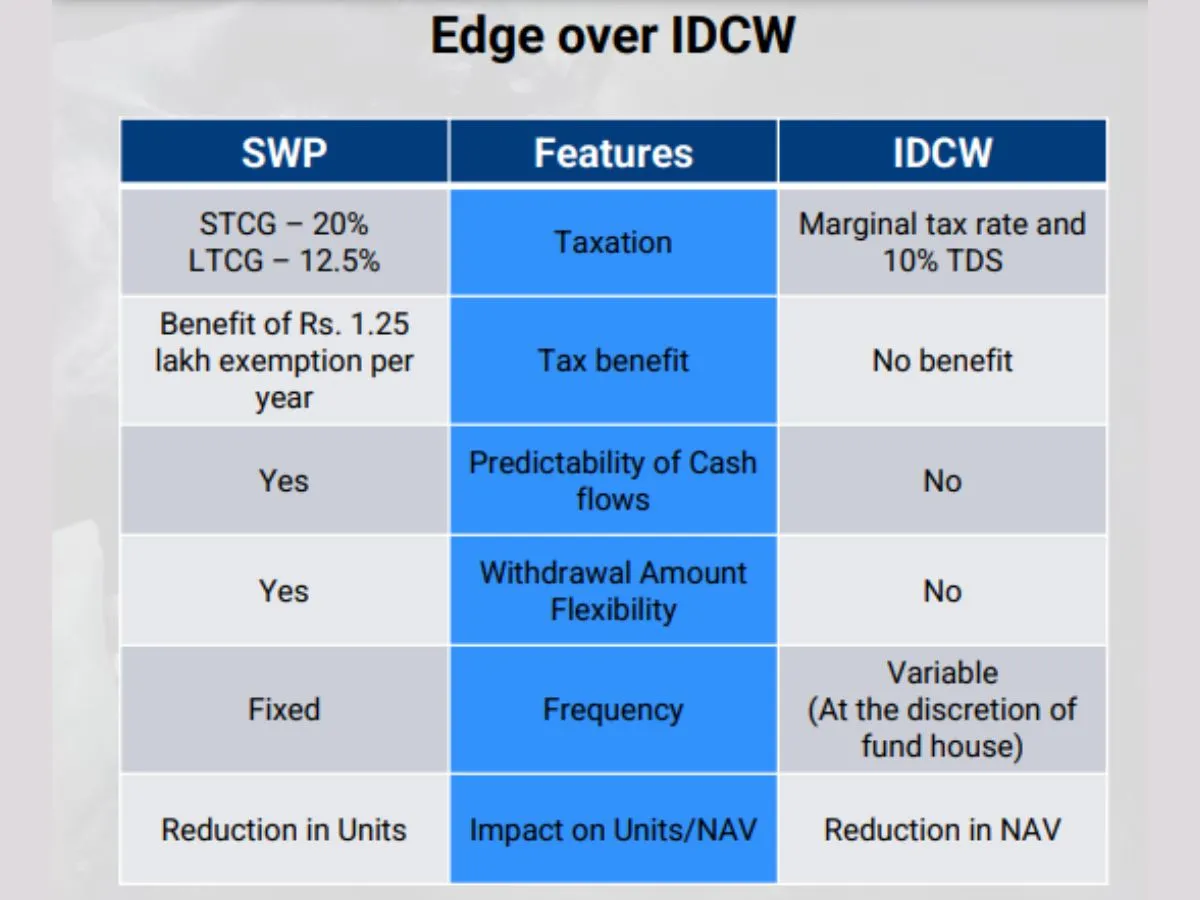 सिस्टमेटिक विदड्रॉअल प्लान (SWP), IDCW की तुलना में ज्यादा टैक्स बचाने में सक्षम है।