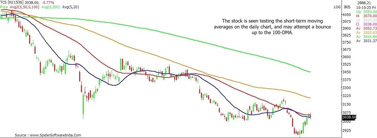 टेक्निकाल आउटलुक से टीसीएस के शेयर फिलहाल अपने शॉर्ट टर्म मूविंग एवरेज 20 डे मूविंग एवरेज (3,031 रुपये) और 50-डे मूविंग एवरेज (3,053 रुपये) के आसपास ट्रेड कर रहे हैं। अगर शेयर इन स्तरों के ऊपर टिकता है, तो यह 100-डे मूविंग एवरेज (3,207 रुपये) तक पुलबैक कर सकता है। उसके बाद 200-डे मूविंग एवरेज (3,450 रुपये) तक की रैली भी संभव है।