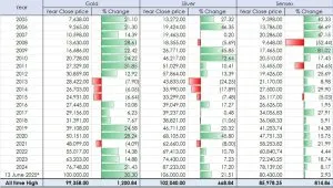 वहीं, चांदी ने अस्थिर रिटर्न दिखाए। साल 2009 और 2010 जैसे वर्षों में चांदी की कीमतों में दो अंकों की तेजी दिखाई। हालांकि, 2013 में चांदी की कीमतों में 24.25 फीसदी की भारी गिरावट भी आई। दूसरी ओर, सेंसेक्स की परफॉर्मेंस मंदी के दौर में भारी गिरावटों से प्रभावित रही।