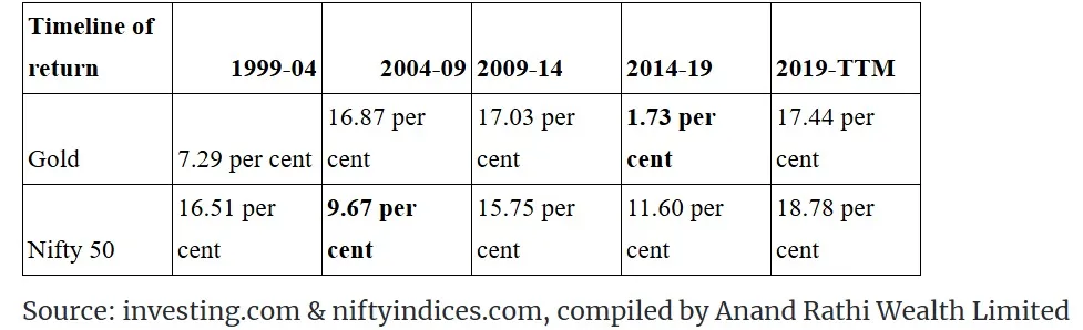सोना बनाम निफ्टी 50 का रिटर्न पिछले सालों में