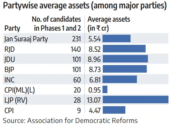 आर्थिक रूप से देखें तो 2,600 उम्मीदवारों में से 1,081 (42 प्रतिशत) करोड़पति हैं। 2020 में 3,722 उम्मीदवारों में से 1,231 (33 प्रतिशत) करोड़पति थे।
