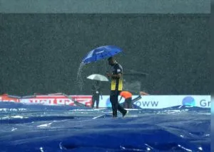 इसके बाद भारी बारिश के कारण खेल रोकना पड़ा। अंपायरों ने सात बजे, साढे सात, आठ और साढे आठ बजे मैदान का मुआयना करने के बाद मैच कल पूरा कराने का फैसला किया। भारत और पाकिस्तान के बीच एशिया कप का ग्रुप मुकाबला भी बारिश की भेंट चढ़ गया था। एशिया कप के श्रीलंका चरण में बारिश ने मुकाबलों में लगातार खलल डाला है। पूरे टूर्नामेंट के दौरान श्रीलंका की राजधानी में बारिश की भविष्यवाणी की गई है।