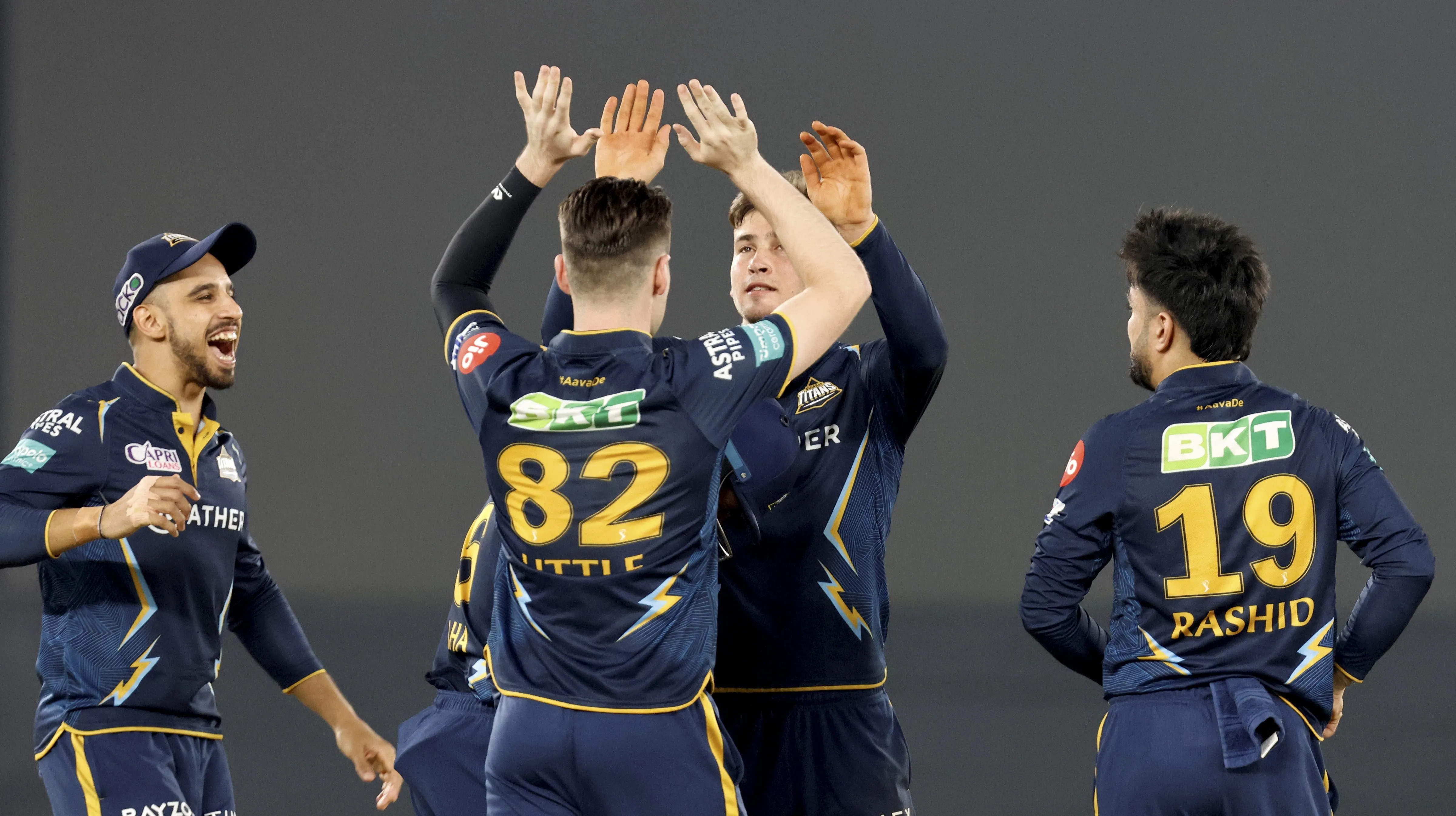 गिल ने छठे ओवर में ग्रीन के खिलाफ लगातार गेंदों पर चौका लगाने के बाद छक्का जड़ा, टीम ने इस ओवर से 17 रन बटोरे जिससे पावर प्ले के बाद गुजरात का स्कोर एक विकेट पर 50 रन था। सातवें ओवर में गेंदबाजी के लिए आये पीयूष चावला ने पहली ही गेंद पर हार्दिक पंड्या (14 गेंद में 13 रन) को चलता कर दिया। विजय शंकर ने 10वें ओवर कुमार कार्तिकेय के खिलाफ छक्का जड़ा।